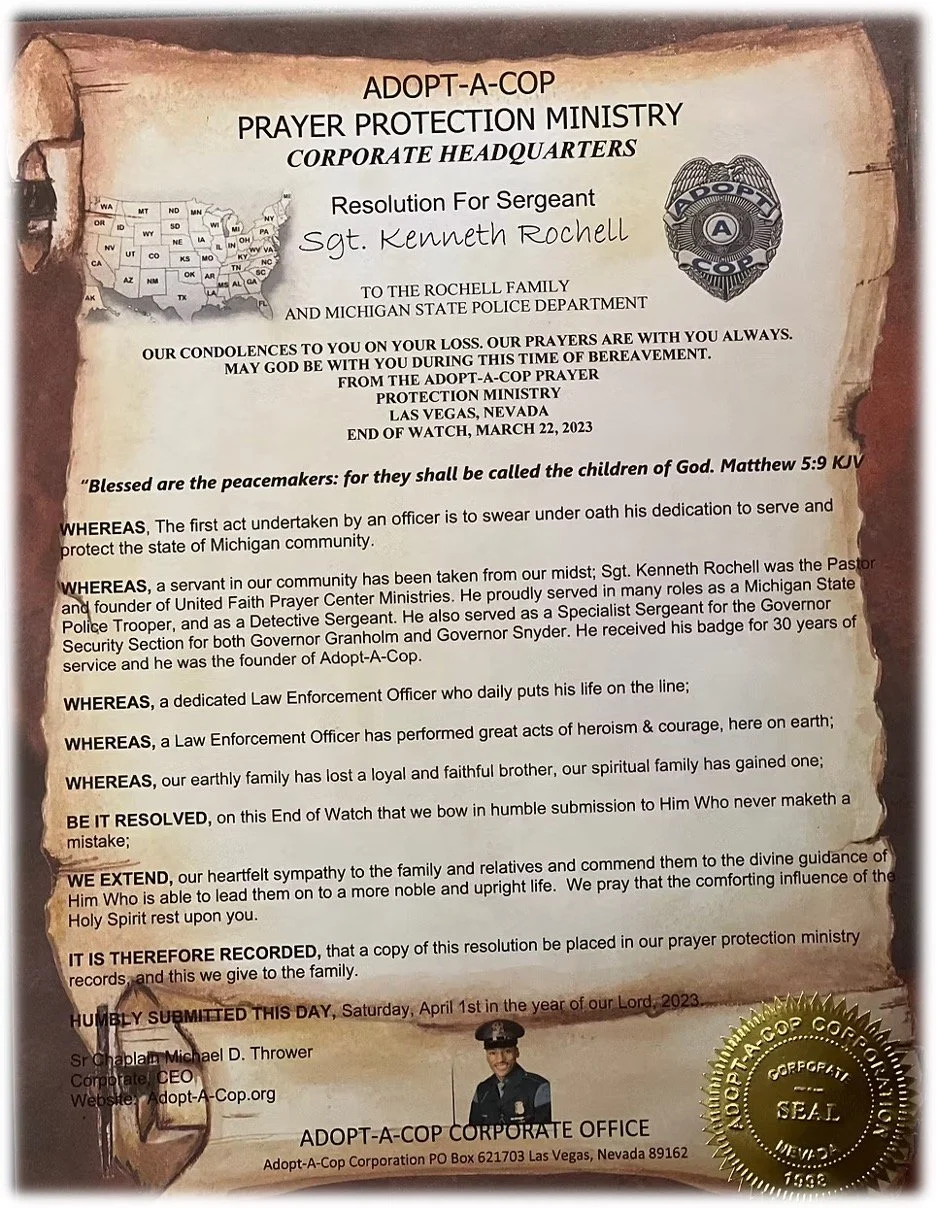 The community connect organization sends out letters of resolution upon request to officers, firefighters, veterans, health care workers and first responders that have died "In the Line of Duty".